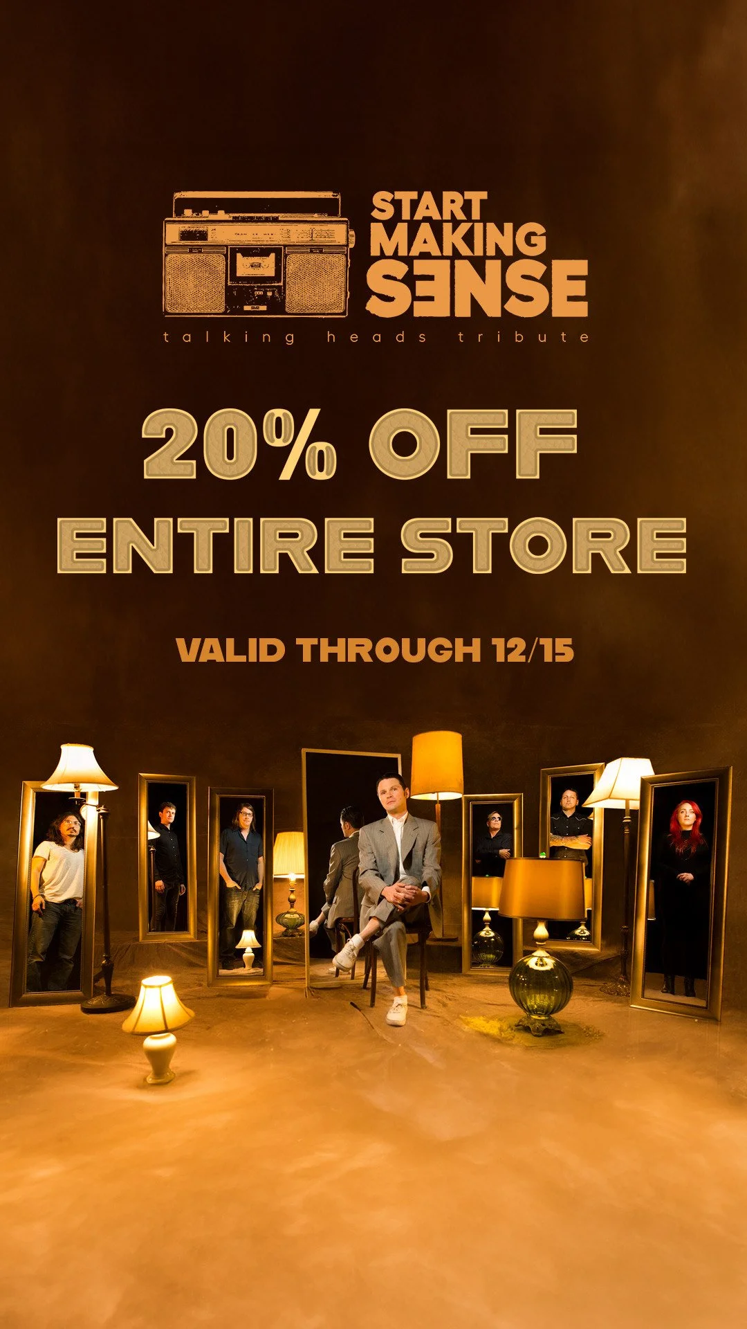 Goodbye 2019! What an amazing year for us. We were fortunate enough to be able to re-create Stop Making Sense at the Paramount Theatre, we had the honor of playing at Levon Helm Studios, The Burton Fall Bash, some amazing festivals and we were lucky enough to travel all over the country playing the music of Talking Heads at the best venues, to all of you beautiful people who enjoy it as much as we do. Thank you so much for coming out to all of the shows, plus all of the love, support and friendship you've shared with us this year (and the 9 years before that!). Now, everyone go see David Byrne's American Utopia on Broadway in 2020 before it's over!! It will blow your mind! Happy new year everyone. We’ve got plenty of amazing things in the works for 2020 and we'll see you all again in March - Start Making Sense