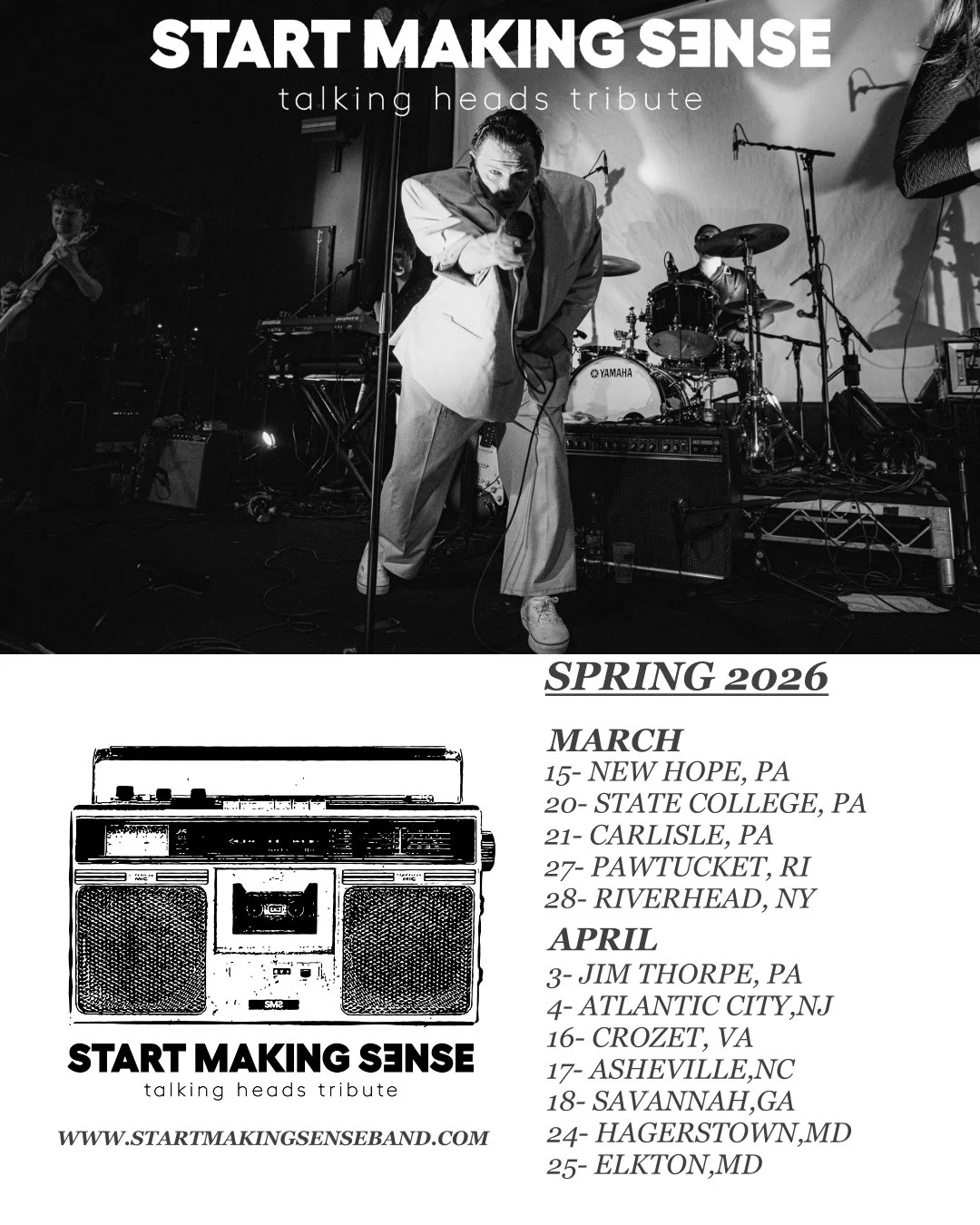And Just Like that, it’s here. WOW. Just WOW. If you would have told us 10 years ago that we would playing all of the places we're playing in the next few weeks we would have laughed. Quite hard. We are beyond honored and grateful do be able to do what we do. It's going to be a bit crazy over the next 3 weeks but we are so happy to do it. We can't thank you all enough for your never ending support, help and enthusiasm in sharing this amazing music with us. And in the middle of it all, on Dec 28th, we'll be doing our complete re-creation of the Stop Making Sense film. Live at the Capitol Theater in Port Chester, NY. We are still in awe that this is happening ! We have rehearsals starting tomorrow where we'll be going over last look, glance, note, dance move, mic stand placement, light bulb (or lack there of), lyric change, inflection, boombox click, big suit alteration and everything else you can think of ! It takes a lot of people to make something like this (and even just our day to day operations) happen. So we have to thank all of the phenomenal crew we work with for taking the time in the middle of the holiday season to do what they do so well. And always with a smile on their face. Always. We here at Start Making Sense are thrilled to work with the absolute best musicians, techs, audio engineers, lighting designers, promoters and venues in the country. hands down. so get your tickets now right here - to the Capitol Theater show as we really don't know when we will be doing this exact show again.